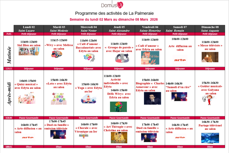 Veuillez trouver ci-joint les programmes d'activités du lundi 02 Mars au dimanche 08 Mars 2026.